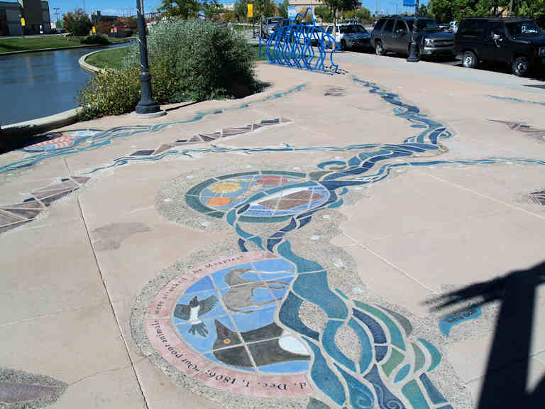 The Mural in the Sidewalk Depicts the Arkansas River.