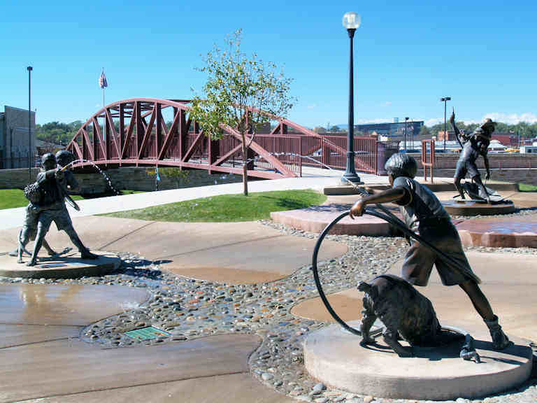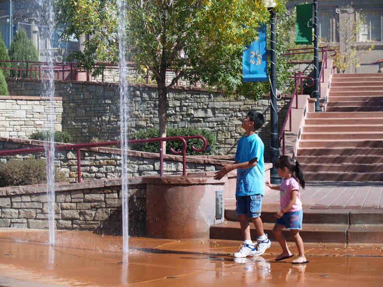 Real Children Playing in the Fountain.